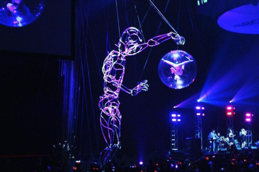 Now when we say that this full articulate beast of a piece – we mean it. Create using 800 ft of half-inch aluminum rod, at 1,200 ft of rope DAVID is the only marionette in the world, capable of holding full performances in his hands. Crazy, right?